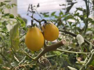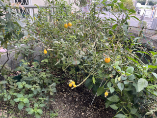 2025年9月27日 by 倉田 晃 二期作的な・・・ もう終わりかと思っていた、 ミニトマトですが、 赤いのは枯れてしまいましたが、 黄色のはここに来て実り出しました! 異常な暑さが和らぎ、 適度な気候になったからでしょうか? 片付けずに、 ほったらかしにしていた甲斐がありました。 そしてそこに埋もれて、 ピーマンもなんか元気です・・・ (そういえば去年は秋頃実ってました。) by kurata ♪