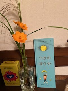 本屋さんで先日見つけた絵本と記念撮影しました。