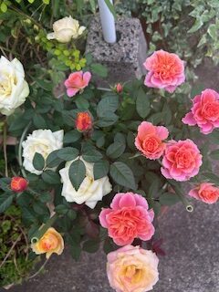 ついつい買ってしまいます。ミニバラも寄せ植えしました。