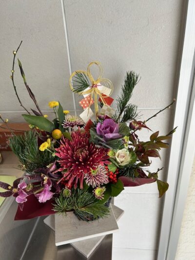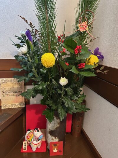 会社の玄関にはお世話になった業者様から頂いたお花を飾りました。