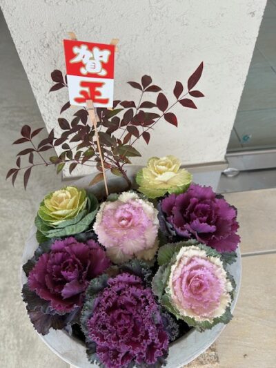 ちょっと小さめの葉ボタンを寄せ植えしました。
