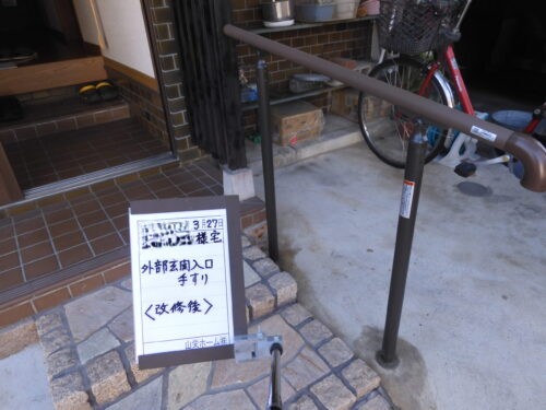または外部で玄関に入るところの勾配付手すりの取付等
